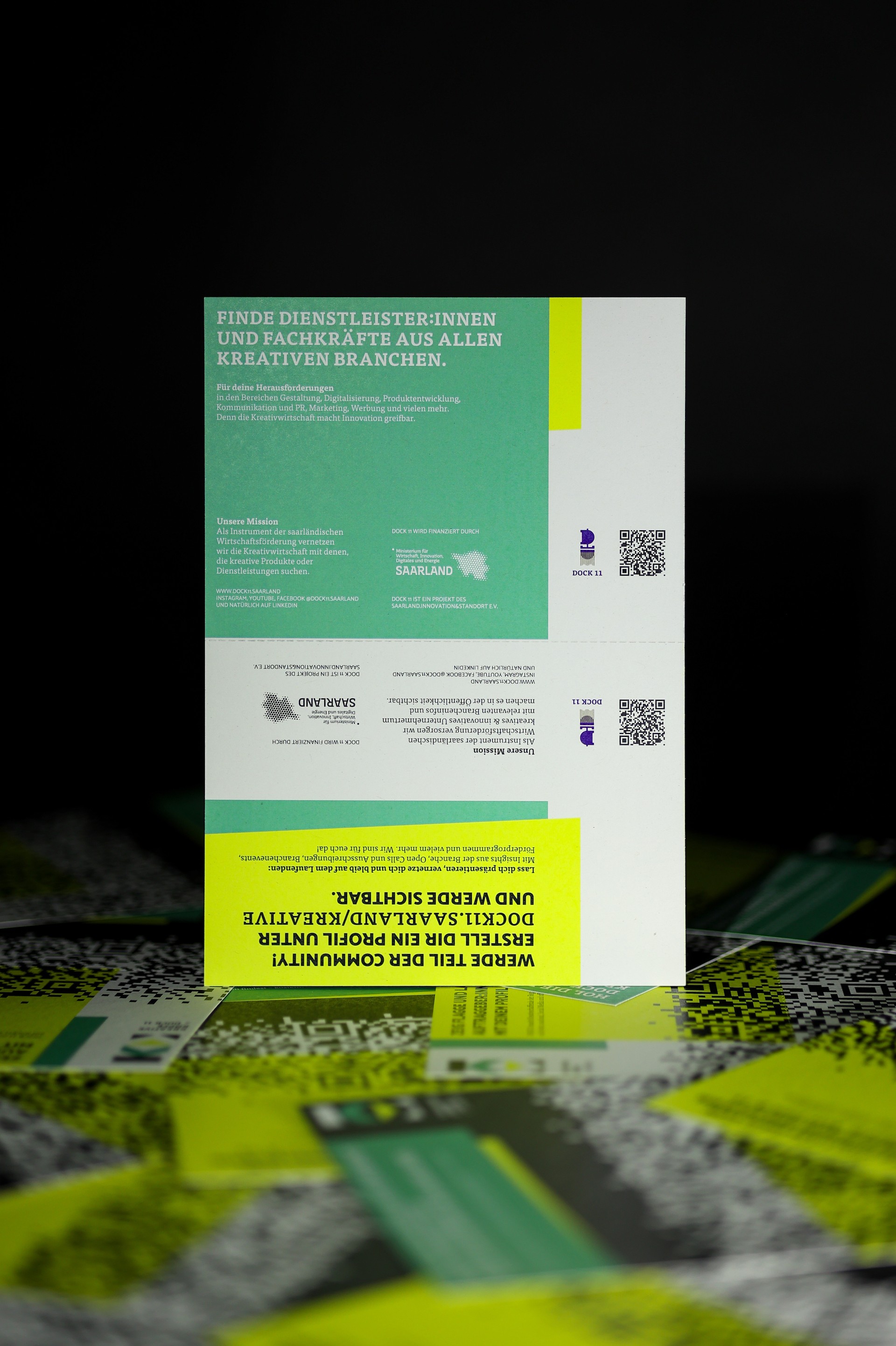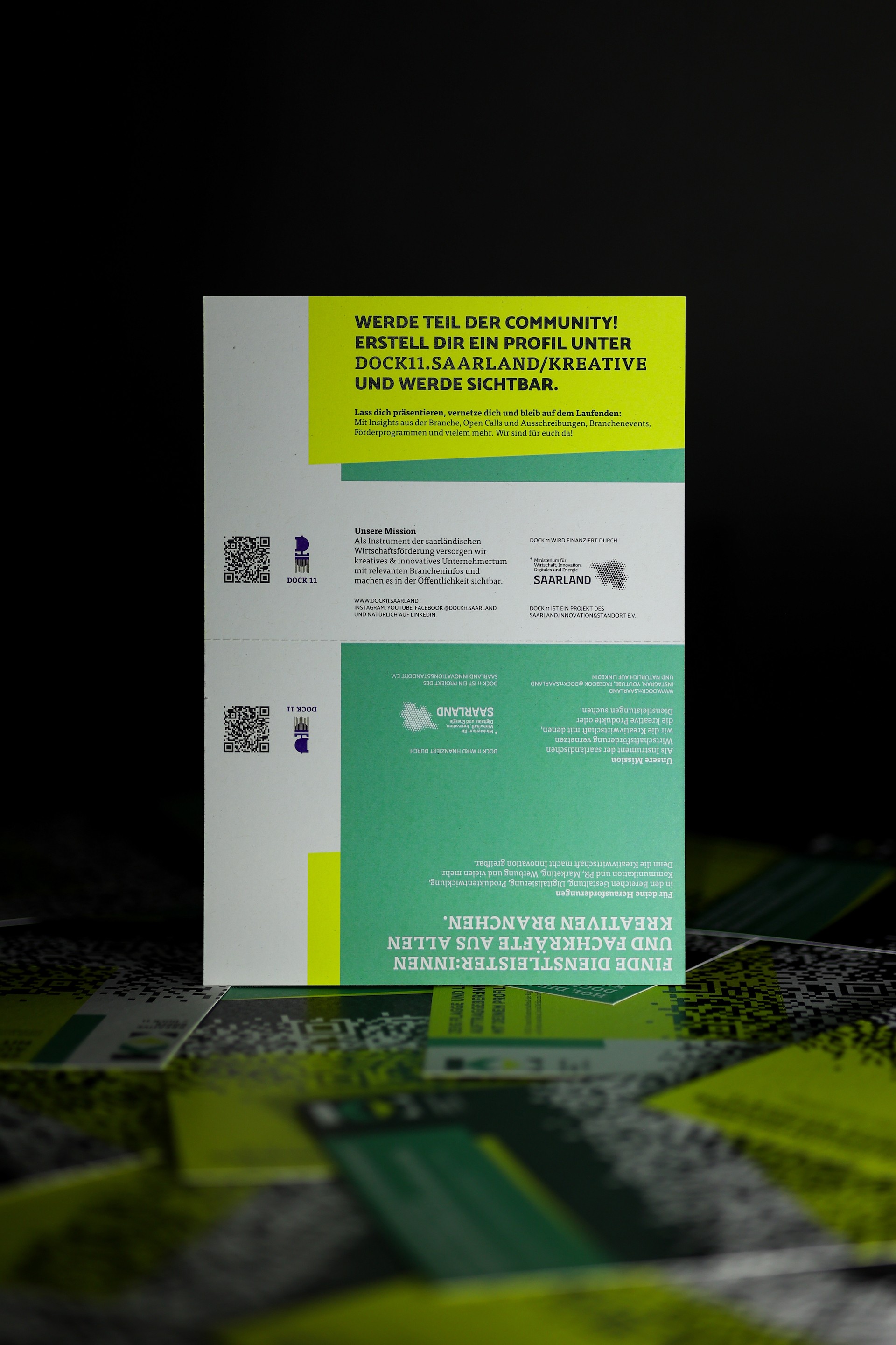 Visuelle Identität und Kommunikationsmittel für die Community „Kreative Köpfe“ von DOCK 11, einem Projekt von saarland.innovation & standort GmbH